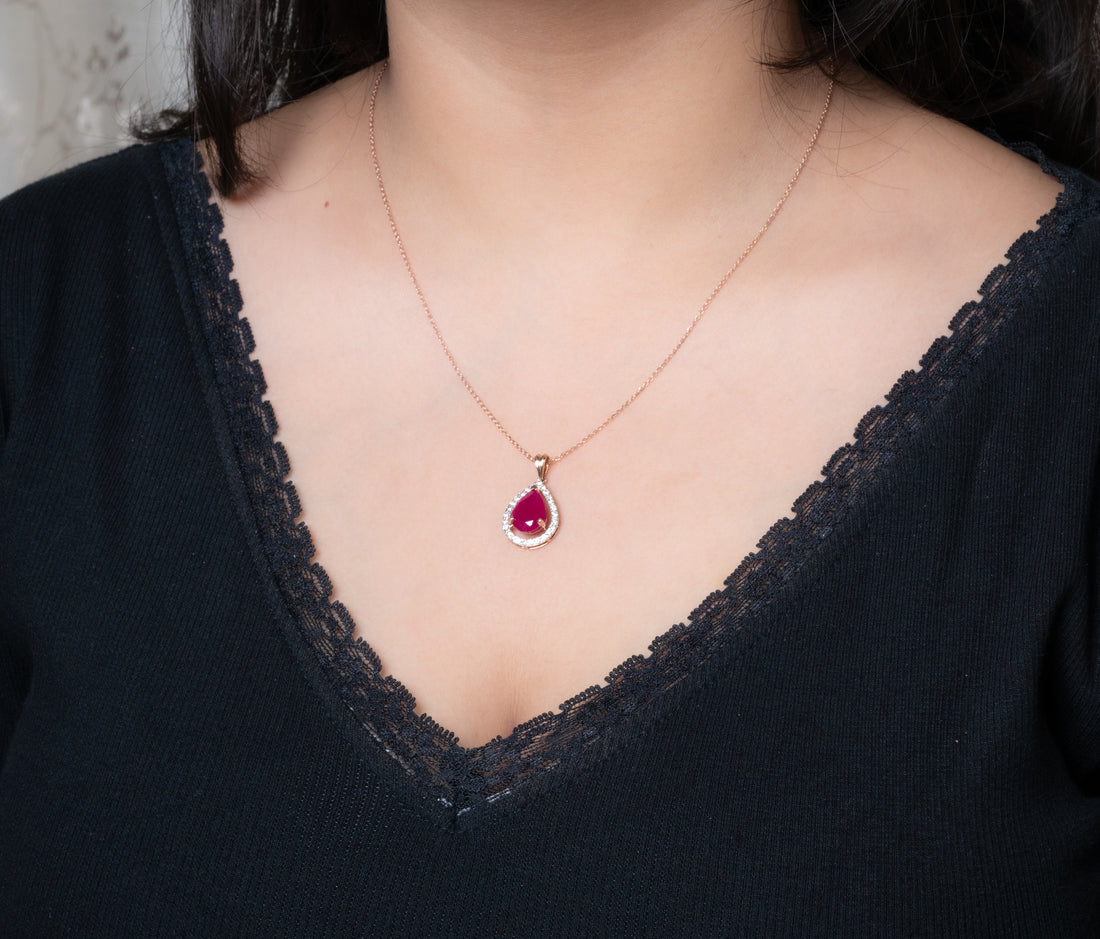 Red Drop Pendant Set captures the essence of grace and passion. Featuring a deep red...