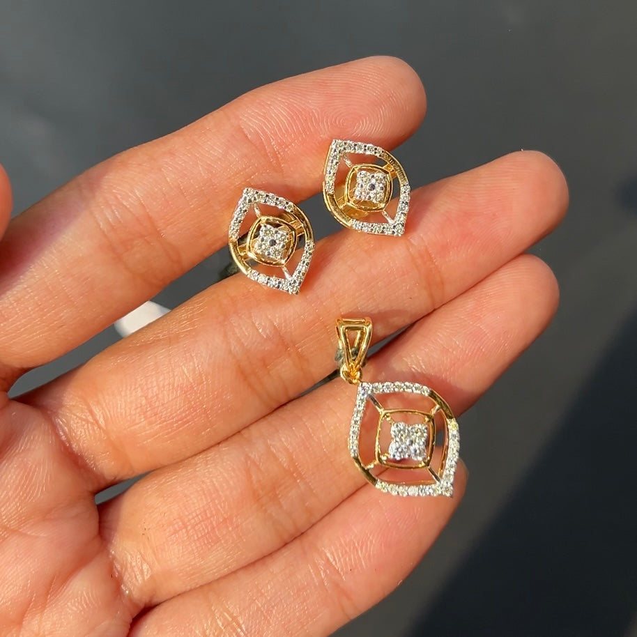 The Viera Diamond Pendant Set showcases a modern twist on classic beauty. Designed in 14Kt...