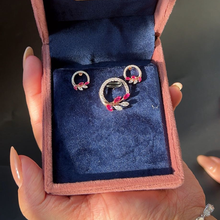 Ruby Bloom Diamond Pendant Set
