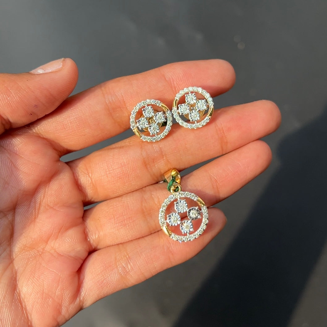 Star Pendant Set radiates timeless charm with its intricate geometric design and sparkling brilliance. Shaped...