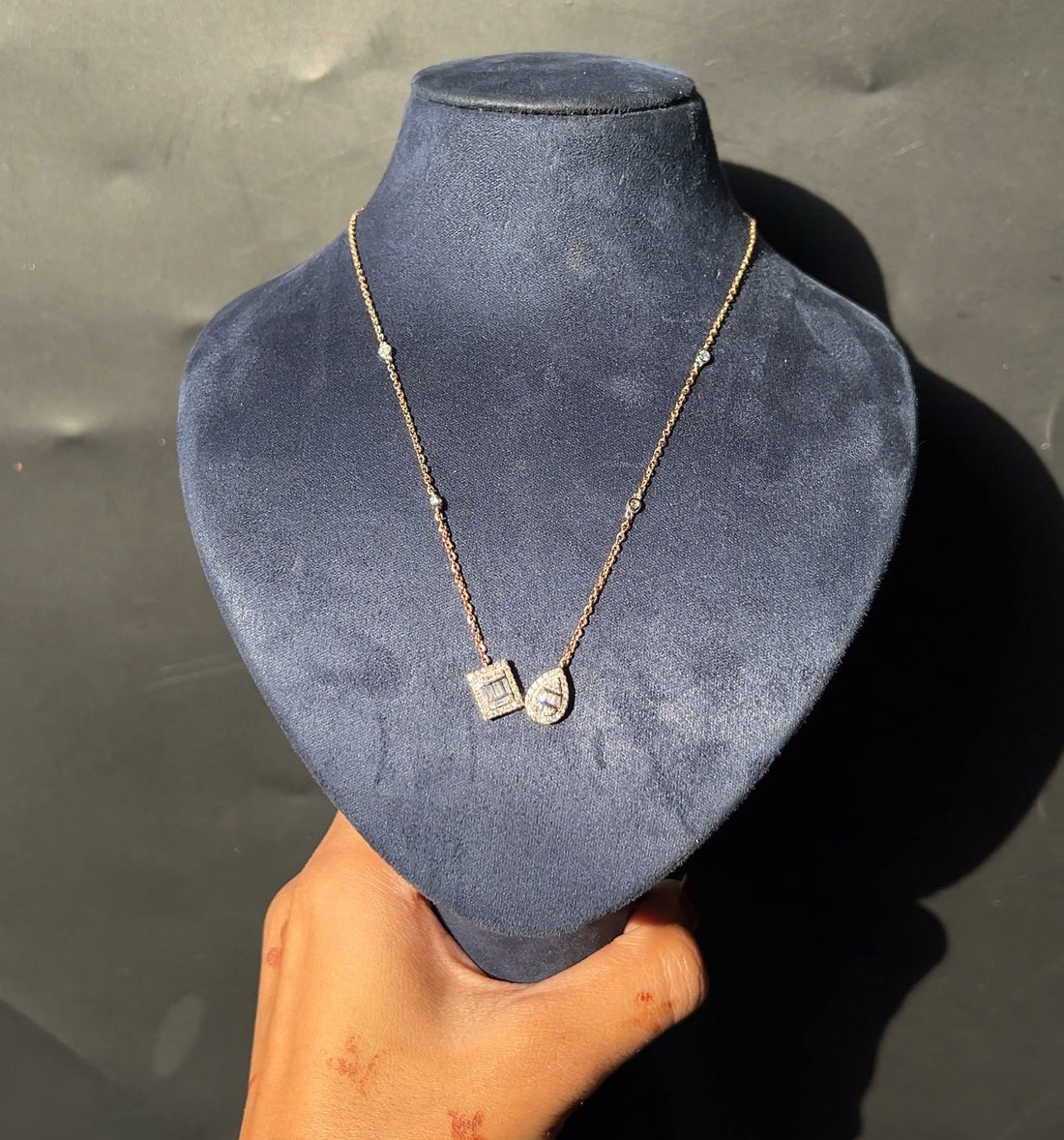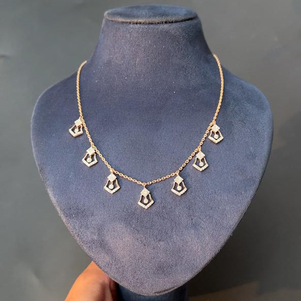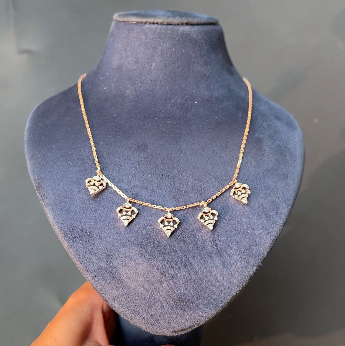 Modern geometry meets delicate detailing in the Anshika Diamond Charm Necklace, a refined piece designed...