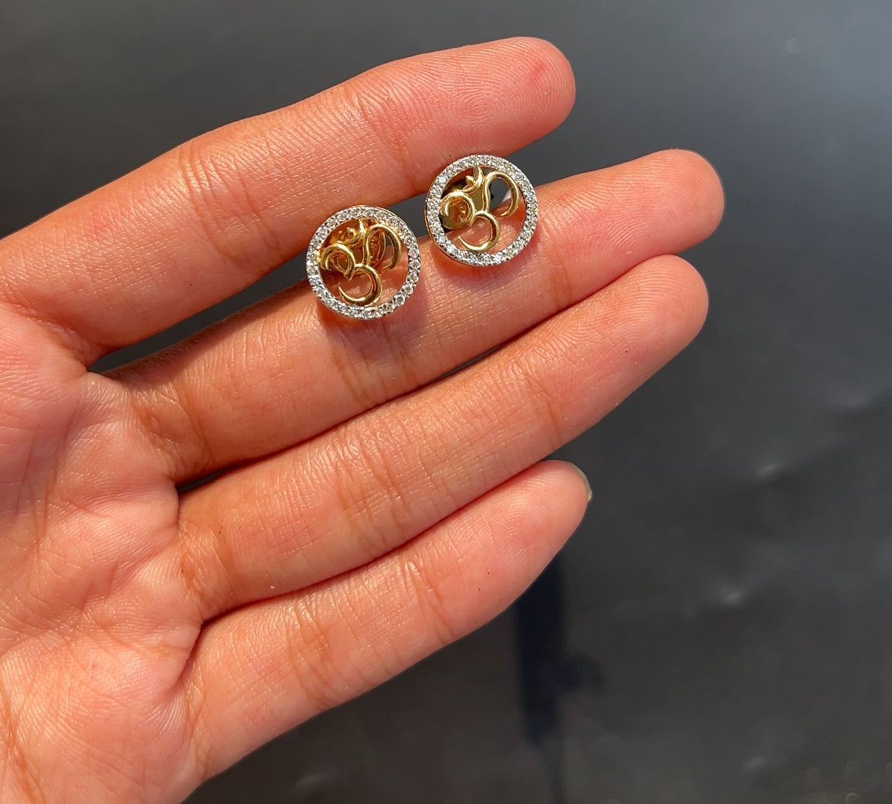Aaradhya Om Diamond Stud Earrings