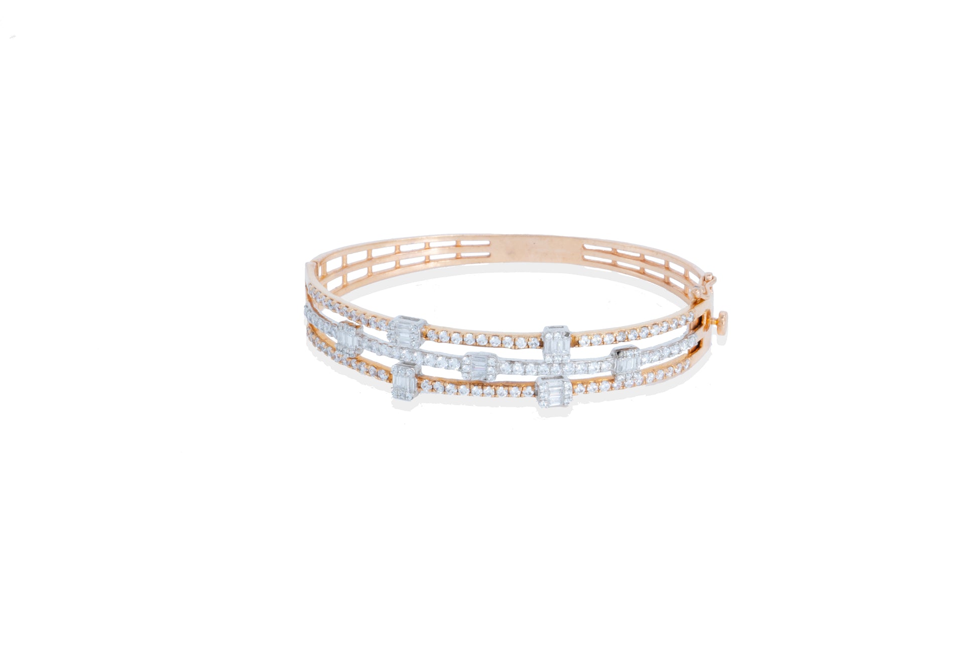 The Baguette Layer Diamond Bracelet brings together symmetry and shimmer. With two pavé rows stacked alongside bold baguette-cut diamonds, it’s a clean and modern design that doesn’t try too hard. The open sides make it lightweight and wearable all day.