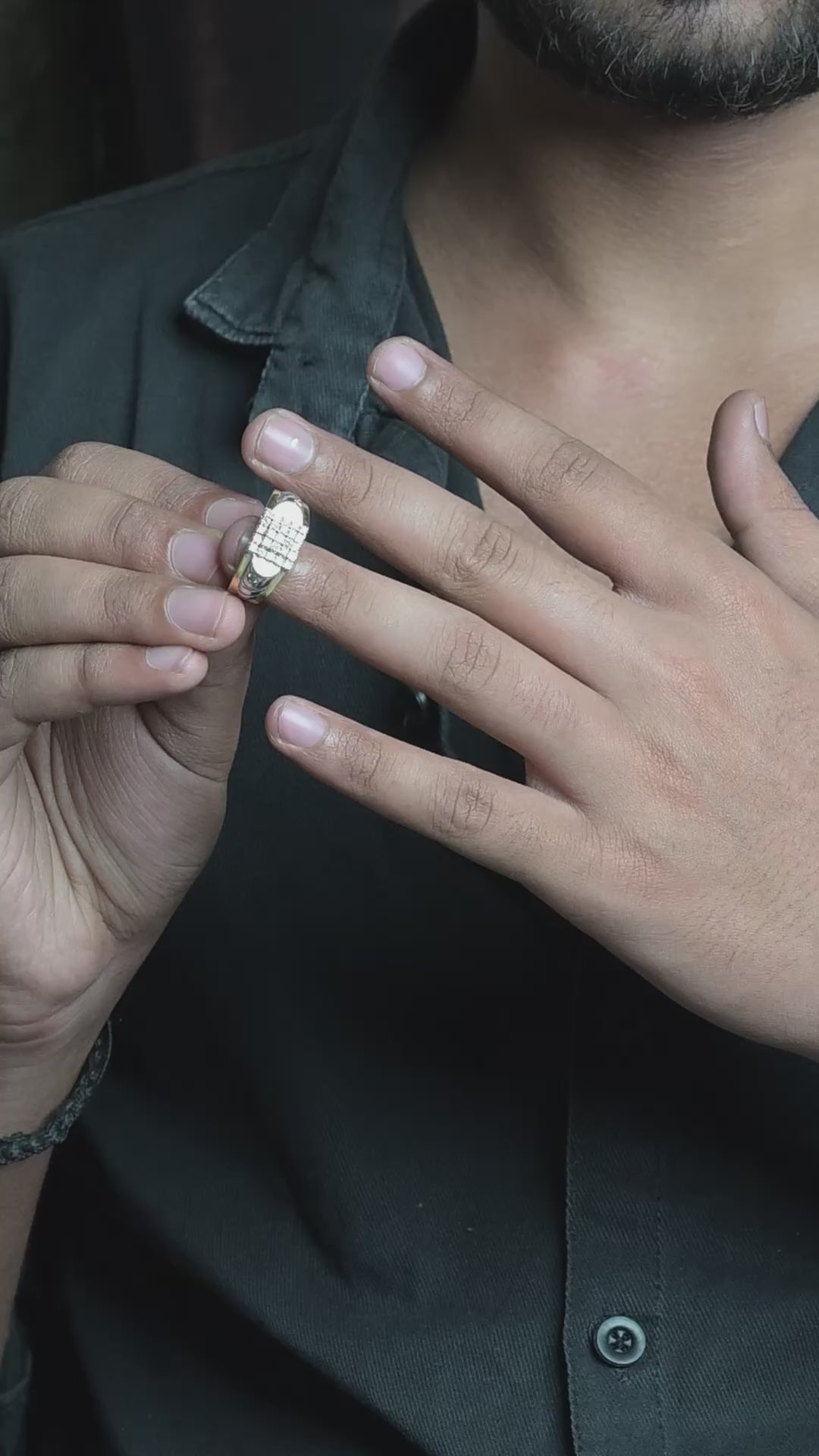 The Urbanite Men's Ring is a striking statement piece for the modern man. This ring features a central cluster of dazzling diamonds, set within a sleek, square frame. The band showcases a unique pattern of alternating polished and textured gold, creating a dynamic and eye-catching look. The combination of classic and contemporary design elements makes this ring a versatile accessory, perfect for both formal and casual occasions. Whether you're attending a black-tie event or simply adding a touch of luxury to your everyday style, the Urbanite Men's Ring is a confident choice.