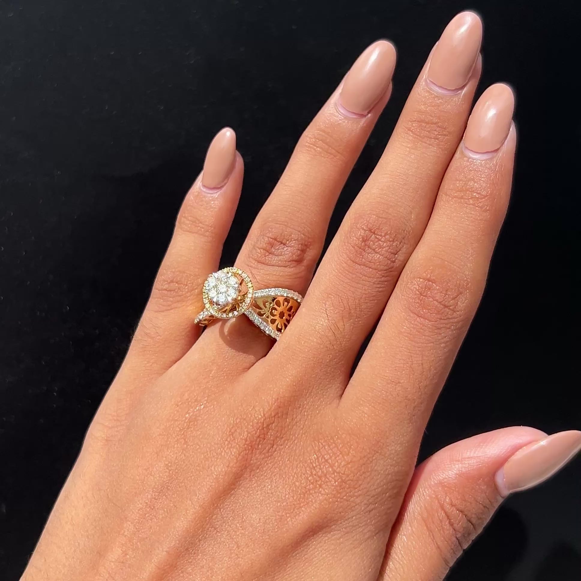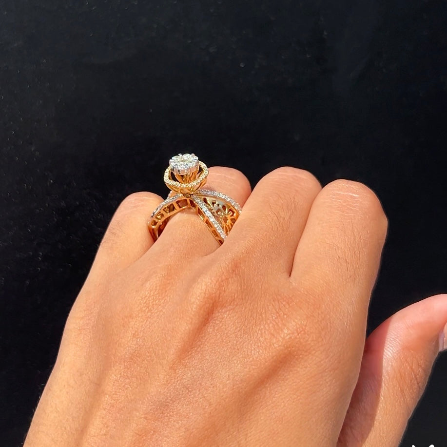 A masterpiece of elegance, the Crownlace Solitaire Diamond Ring captures the essence of royalty. With a brilliant round solitaire elevated on a crown-like setting and intricate filigree detailing along the band, this design weaves together tradition, grandeur, and fine artistry.
