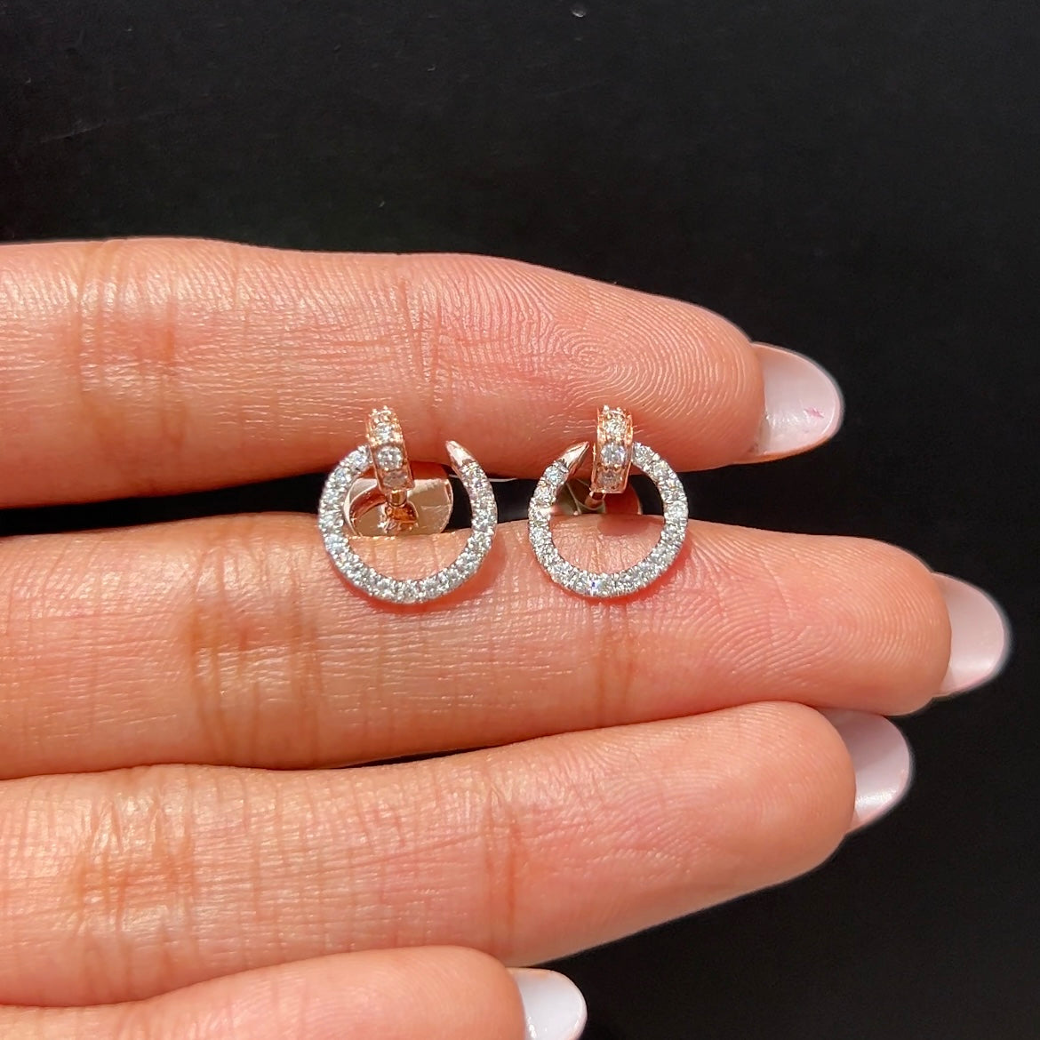 These Diamond Halo Circle Drop Studs embody a perfect balance of refined elegance and modern flair. Expertly crafted in radiant 14Kt gold, each stud features a delicate open circle design, fully encrusted with pavé-set diamonds for an irresistible sparkle. The circle gracefully drops from a diamond-studded link, adding subtle movement and catching the light with every turn.