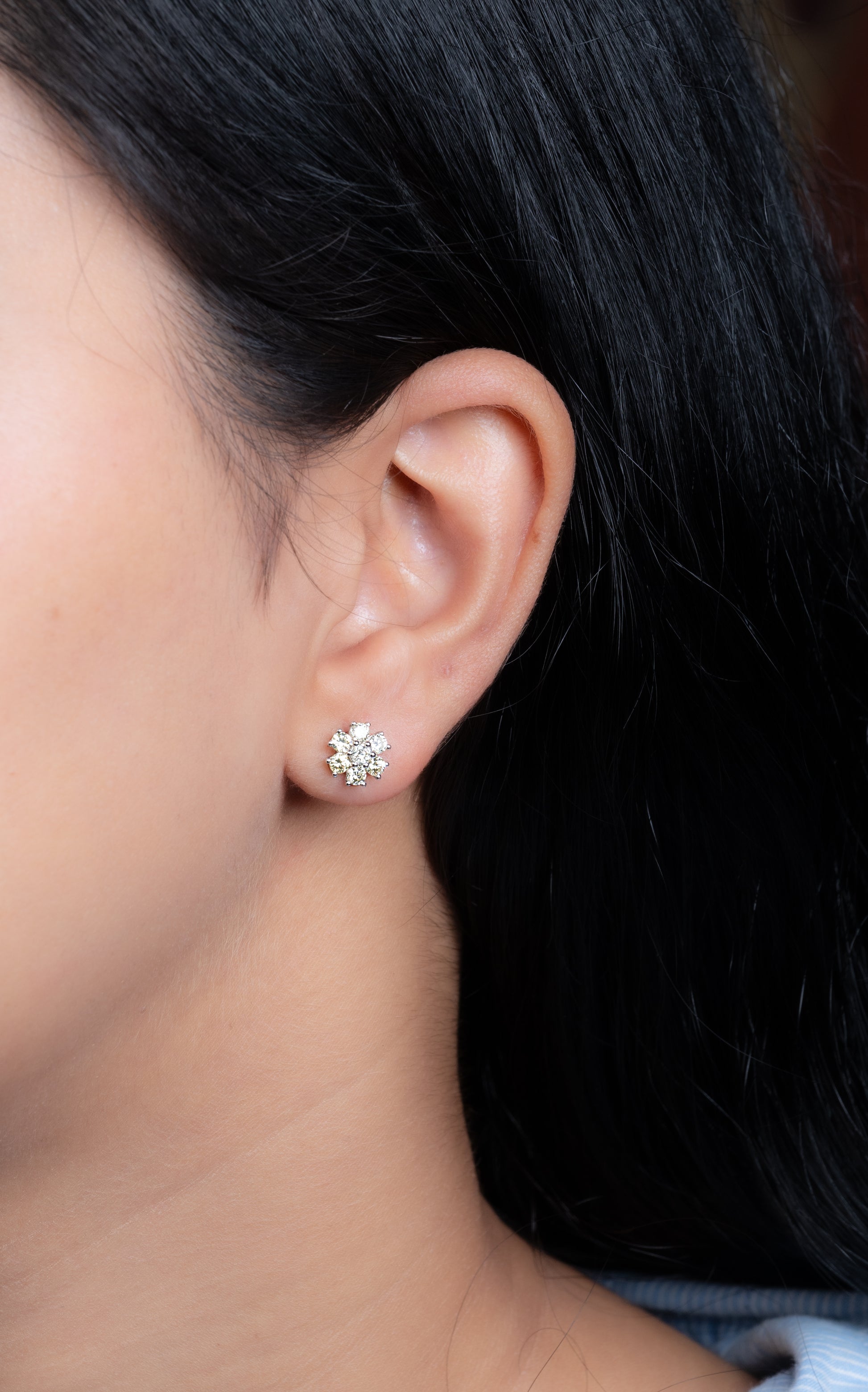 Celebrate timeless elegance with the Nakshatra Diamond Earrings Small. Inspired by celestial patterns, these exquisite earrings feature a radiant floral motif crafted from meticulously arranged round-cut diamonds, symbolizing purity and brilliance. Set in lustrous 14K and 18K yellow gold, the intricate detailing ensures a stunning interplay of light and sparkle. The secure screw-back closure adds comfort and durability, making them perfect for daily wear or special occasions. Designed to embody grace and sophistication, these earrings are a testament to impeccable craftsmanship and refined style. Elevate your jewelry collection with this dazzling pair, ideal as a thoughtful gift or a personal statement piece.