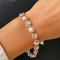 The Orbit Diamond Bracelet features a captivating sequence of circular diamond clusters that symbolize eternal grace and harmony. Crafted in 14Kt rose gold, each bezel-set diamond cluster is framed with a sparkling halo — creating a radiant illusion of orbiting brilliance around your wrist. A perfect blend of sophistication and everyday charm.