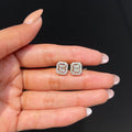 Radiant Halo Baguette Diamond Stud Earrings