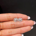 Delicate hexagon-shaped studs featuring a snowflake-inspired diamond cluster at the center, framed by a fine diamond-studded outline. A perfect blend of elegance and sparkle for everyday wear or special occasions.