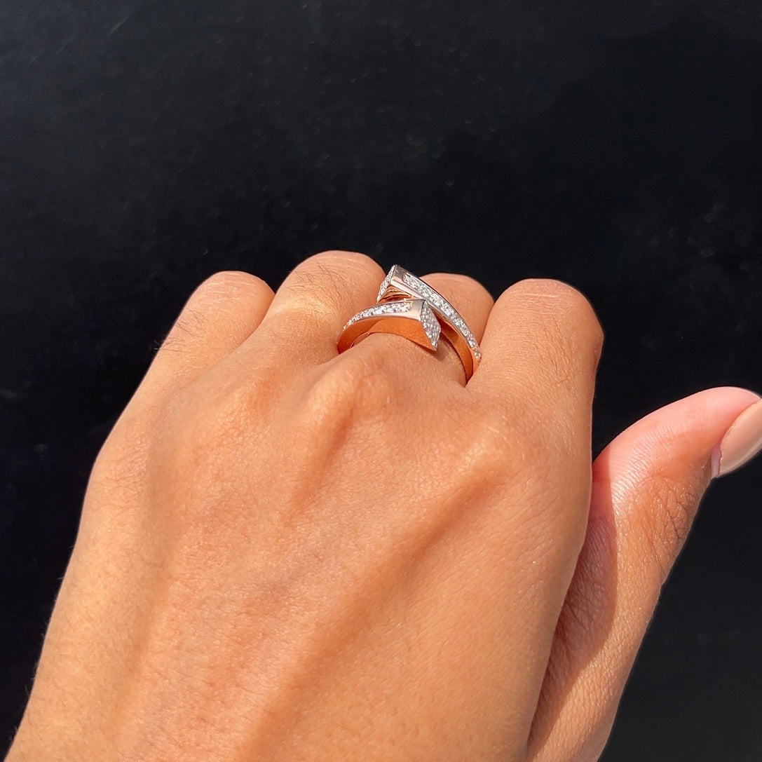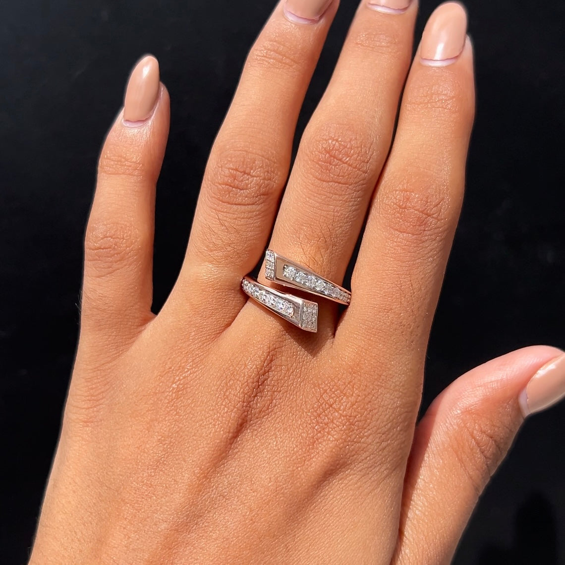 Where edge meets elegance — the Vega Spark Diamond Ring is a modern twist on classic brilliance. With its open-front design and sleek, asymmetrical arms studded in diamonds, this ring exudes confidence, clarity, and character. Bold yet graceful, it’s made for hands that make a statement.